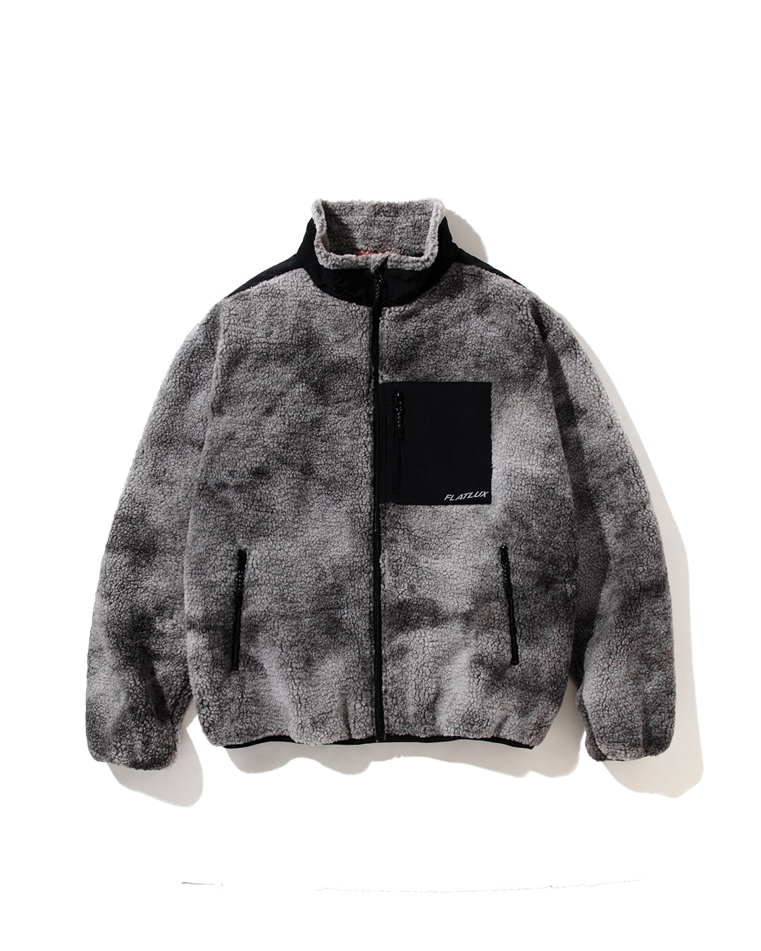ムラ染めボアフリースのフルジップジャケット。軽い。柔らかい。切り返しはナイロン。