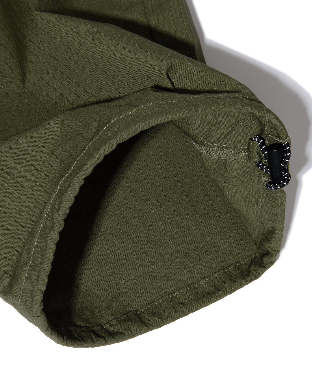 リップストップの履き込んでくたびれてちょっと汚れたぐらいの質感、たまらないですよね。ヒップの切り返しとそれに沿ったリフレクターパイピングが特徴のカーゴパンツ。カーゴポケットについたチームタグも実はリフレクター。これから時期に最適な、軽くて丈夫なリップストップコットン。全体のシルエットはCoh Eazy Pantを踏襲していて、ワタリ40cmオーバーのかなり太め。腰回りは後ろだけゴム入ってます。裾幅広めでドローコード付きなので、ストンと履いてもいいし、絞って履くのもアリ。