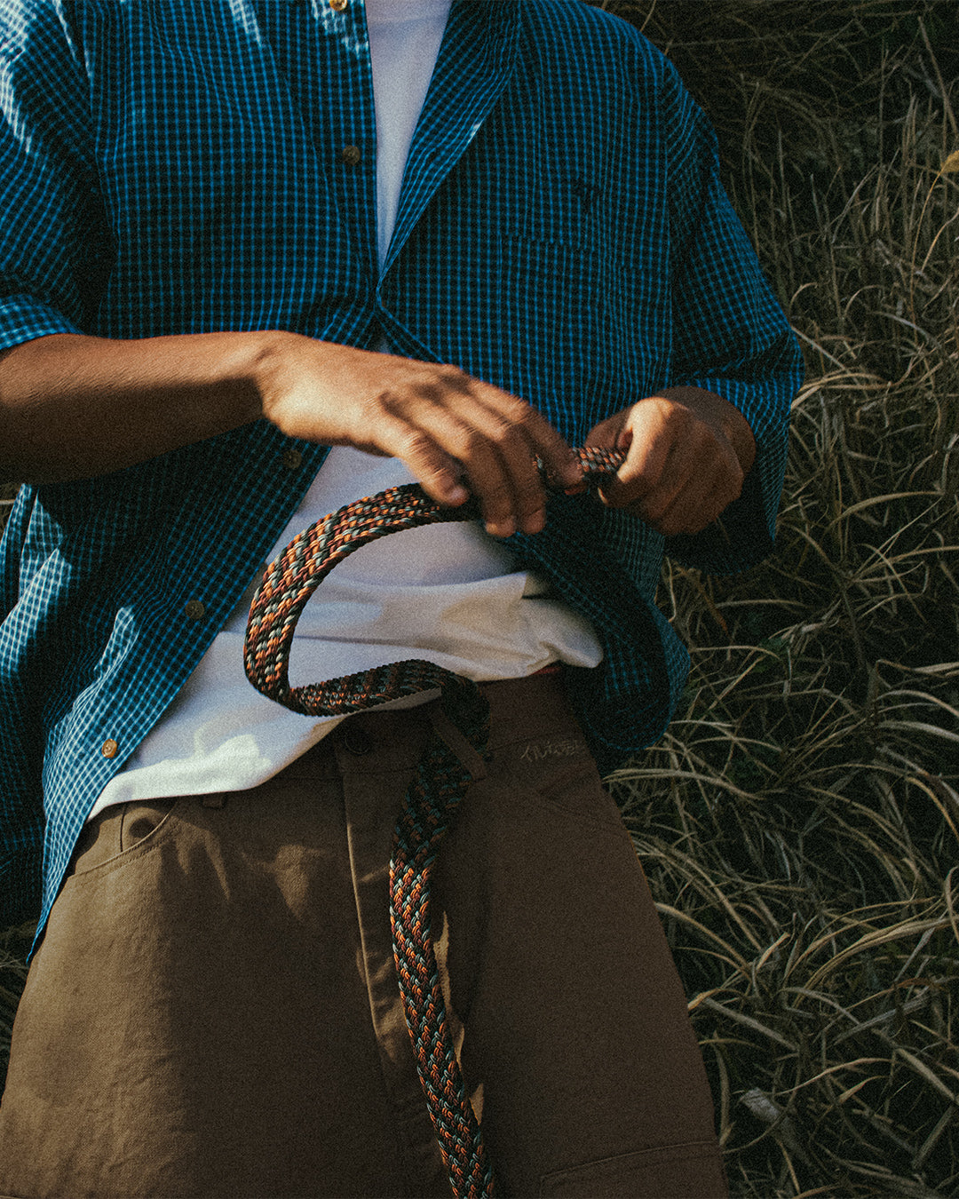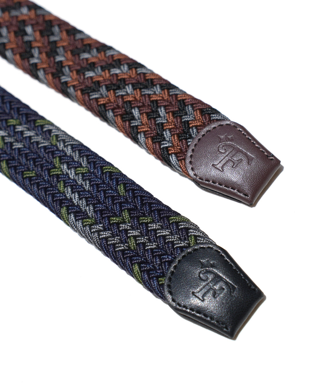 モザイクのような多色の編みのストレッチメッシュベルト。テンションがかかるとググッと伸びるので、この上なくストレスフリー。スケートやダンスなど身体を動かす時はもちろん、普通にイスに座るだけで体感できる気持ちよさ。茶色ベースでグレーと黒が入ったearth、黒と濃紺にグレーとオリーブが混ざったblack。140cmと少し長めに作ったので、垂らして使うのもアリ。再利用可能な防水のパッケージに入れたので、小物入れなどお出かけのお供にどうぞ。
