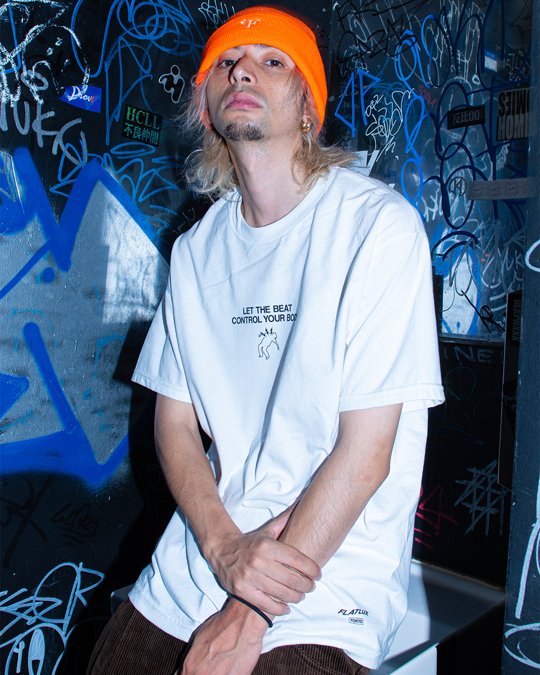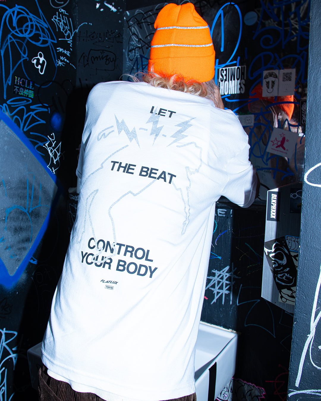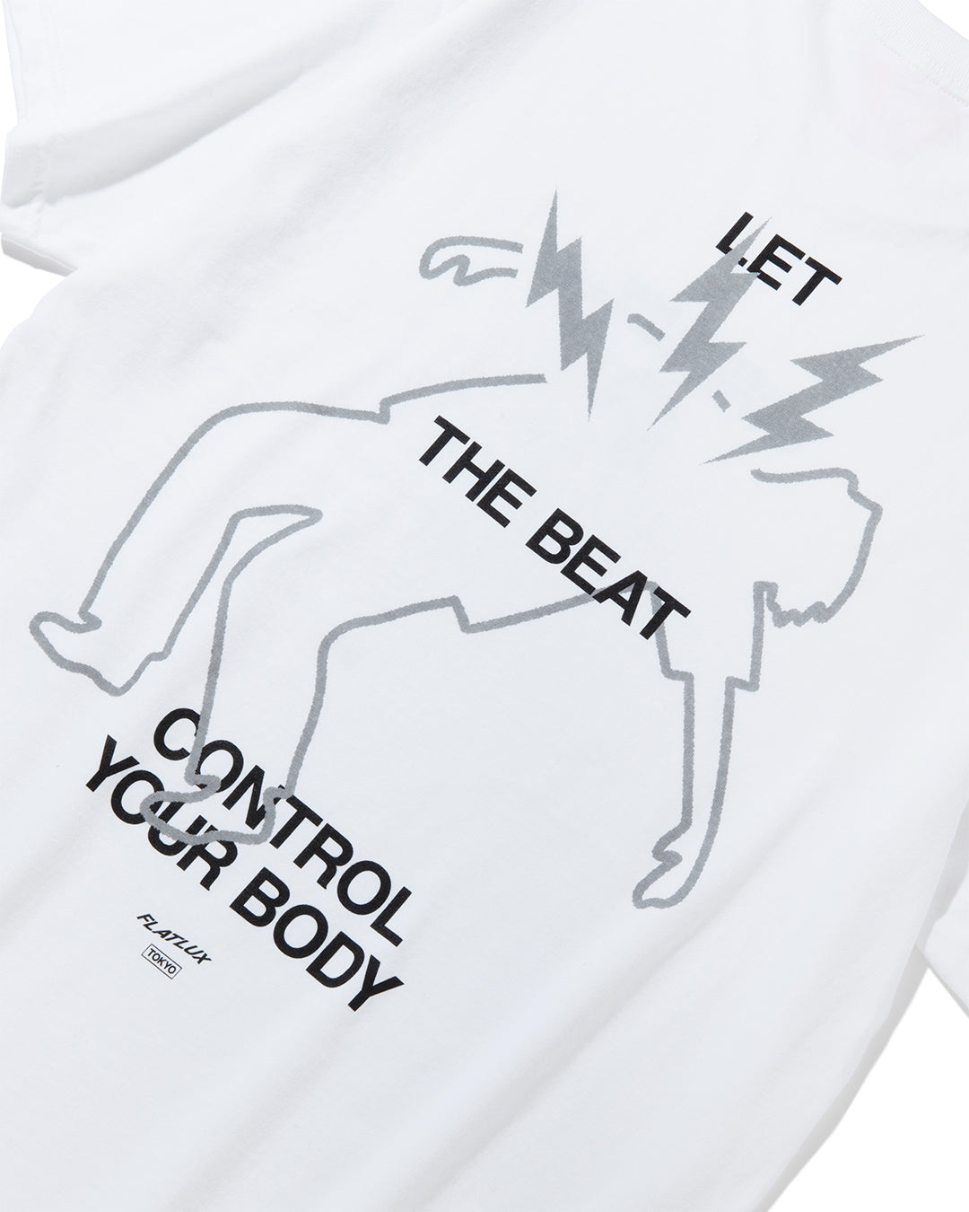 Let The Beat Control Your Body - ビートに身を委ねろ。ざらっとした質感のUSコットンTシャツにリフレクタープリント。