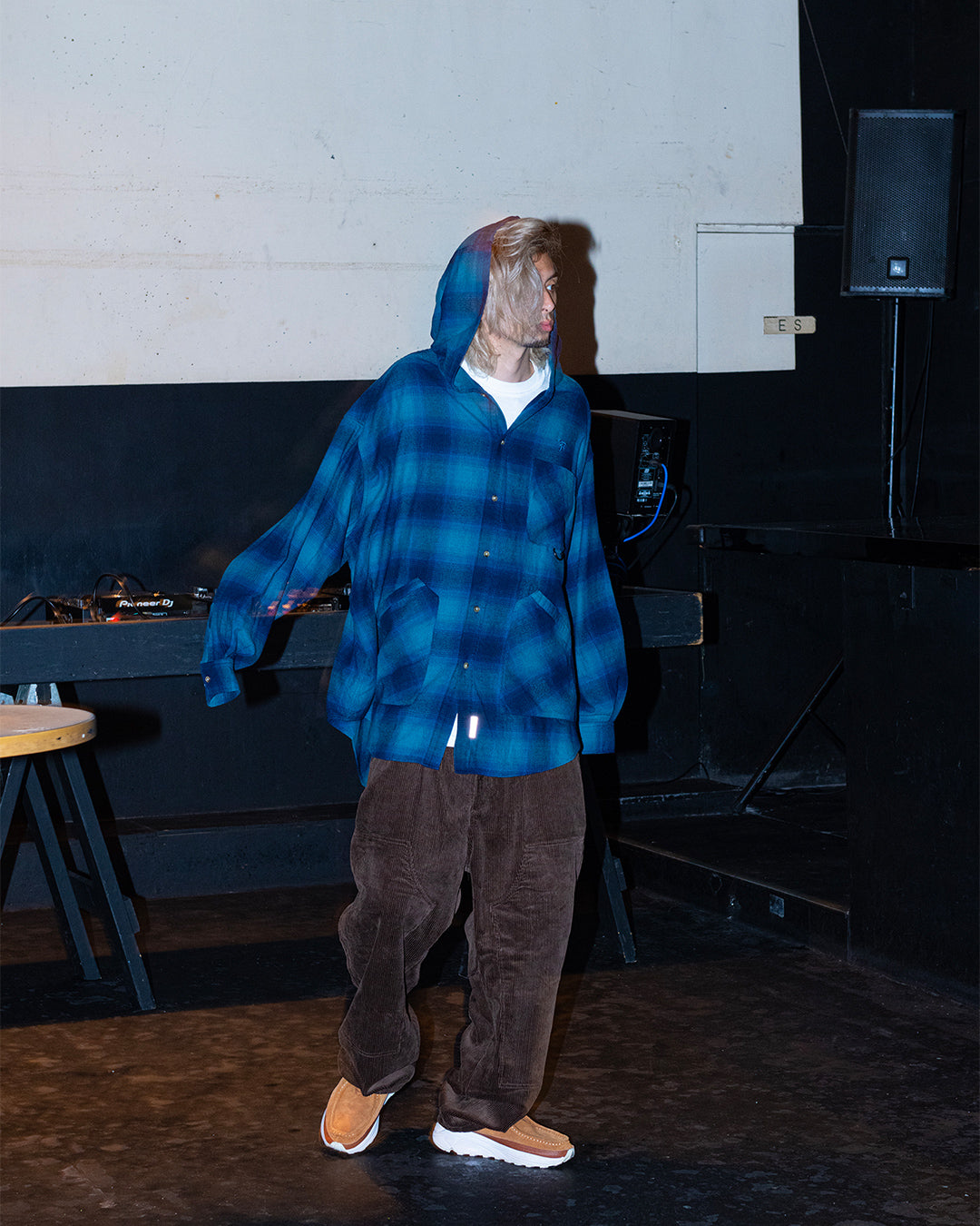 暑い秋に活躍する、超ワイド&超ロングなポンチョ風のフード付きネルシャツ。シャツなんだけどジャケットっぽいポケットが付いて、ライトアウターっぽくTシャツやスエットの上に羽織ってもいいし、ジャケットの中に着てもいいし、色々遊べます。