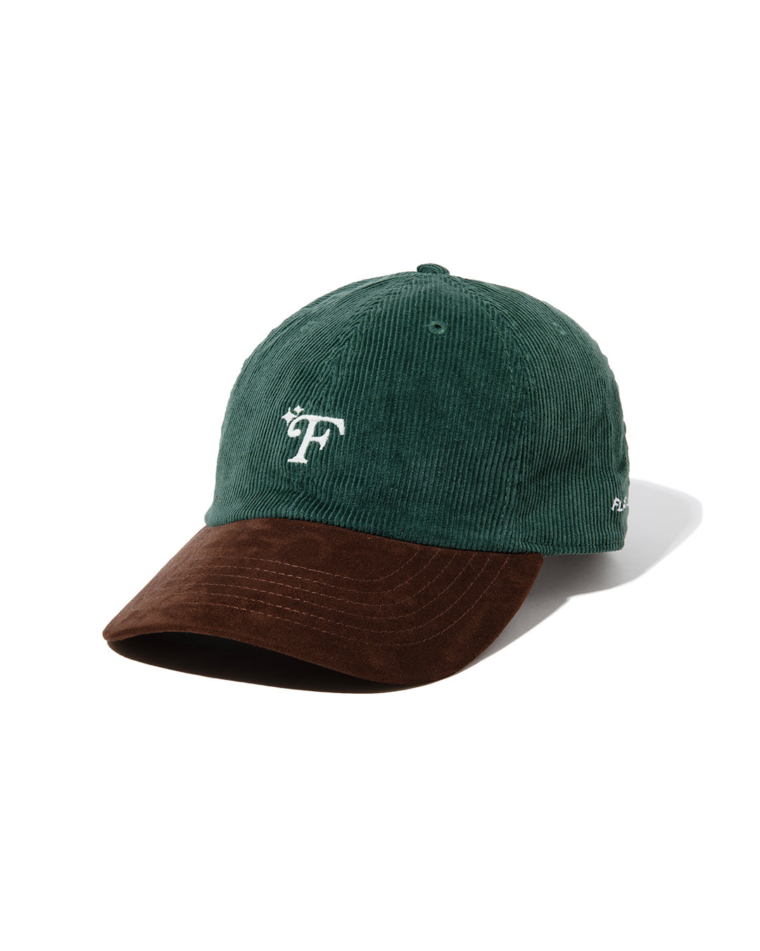 コーデュロイのクラウンにシンセティックスエードのバイザー。アメリカの田舎のお父さんが被ってそうなイナタさを醸し出しつつ、めちゃくちゃ服に合わせやすいシルエットの6パネルキャップ。